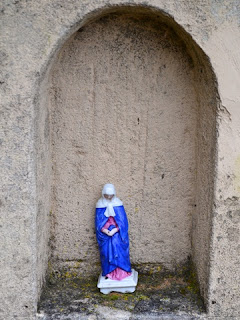 Drugi z pomników zamiast rzeźby ma we wnęce malutką, porcelanową (?) figurkę Matki Boskiej.